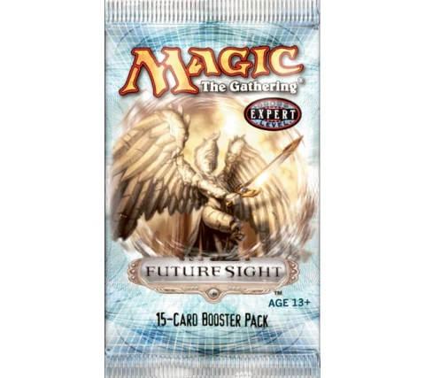 A Future Sight booster contains 15 Magic: the Gathering cards including 1 rare, 3 uncommons and 11 commons.