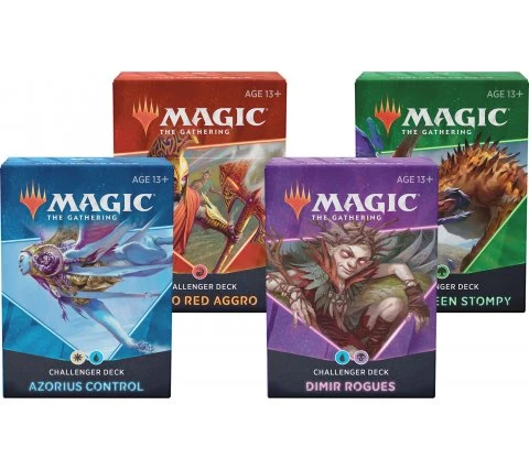 Challenger Decks are ready-made tournament worthy decks suitable for Standard. The decks have been carefully composed and each represent their own strategy and playing style. Each deck contains 60 cards with many toppers supplemented with a sideboard of 15 cards. The decks contain cards from Throne of Eldraine, Theros: Beyond Death, Ikoria: Lair of Behemoths, Core Set 2021, Zendikar Rising and Kaldheim.