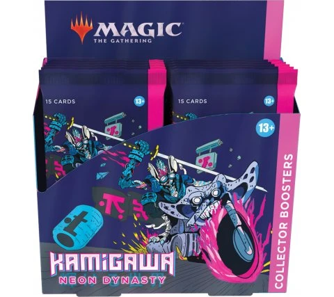 A collector Booster Box from Kamigawa: Neon Dynasty contains 12 collector boosters. Each Kamigawa: Neon Dynasty collector booster contains 16 Magic: the Gathering cards which: