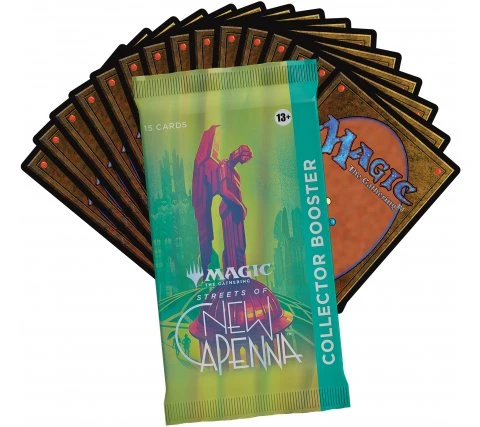 A Streets of New Capenna collector Booster Box contains 12 collector boosters. Each Streets of New Capenna collector booster contains 16 Magic: the Gathering cards of which: