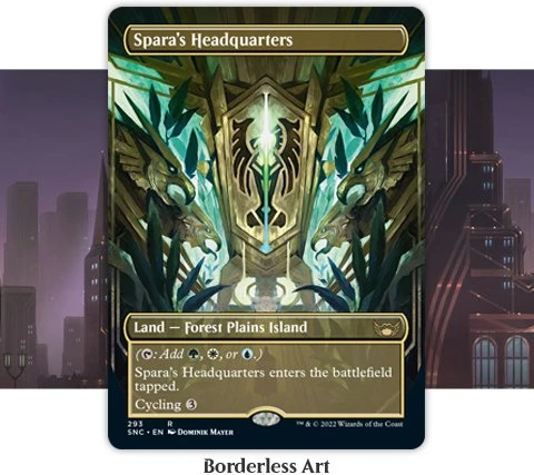 *In Collector Boosters you can find different foilings. The traditional rainbow foil, foil-etched and especially for Streets of New Capenna: Gilded Foils. These cards have a gold-colored 3D relief for a luxurious look.