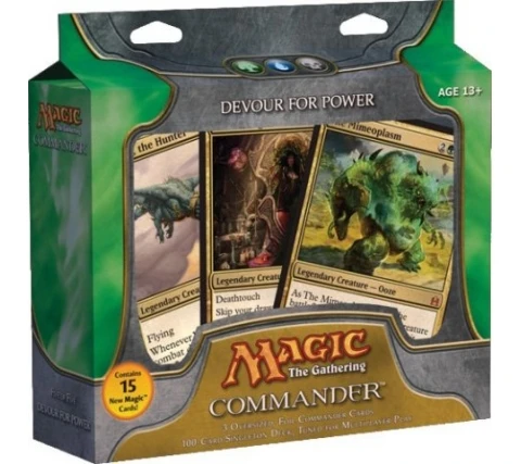 To support this popular format, Wizards has designed a Commander deck for each of the five wedge color combinations. Each deck therefore contains 100 black-bordered cards, including 15 brand-new, never-before-released cards. In addition, each deck foil contains oversized versions of three possible commanders. All new cards are tournament legal in Vintage and Legacy, with the exception of course of the oversized commanders.