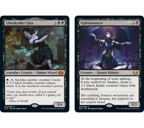 Commander Collection Black is a limited product with eight highly sought-after reprints and a double-sided token. The cards are specially selected for the Commander players who like to play with the color black. All eight cards and the token feature beautiful new art. Some of the new art pays tribute to well-known Legendary Creatures from the Magic: the Gathering multiverse. The Sol Ring and Command Tower may not be black, but the art has been modified to fit perfectly in a black deck.