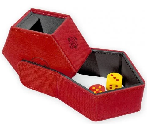 The Hexatower is a premium dice tower in the famous hexagonal shape of Catan. It has an innovative Nexofyber surface and a soft, silver fabric inner lining. The premium materials ensure a comfortable touch-and-feel experience and dice-rolling is enhanced by a pleasant sound. The surrounding flap, held safely closed by strong magnets, can be removed and sticks to the side of the Hexatower to create a dice-stopper at the gaming table. Of course, this luxe accessory can also carry all of your dice.