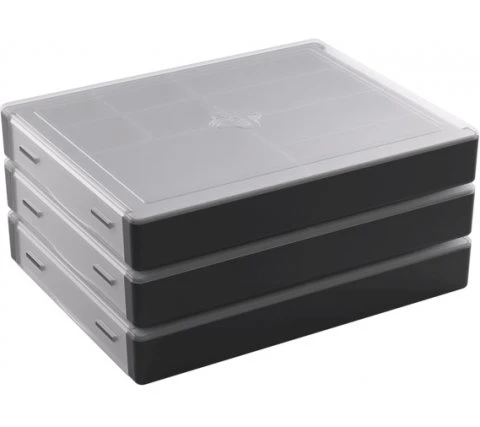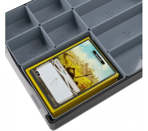A revolutionary way of storing tokens with the Token Silo Convertible from Gamegenic. The box has a modular design and can be arranged to your own taste. Each box comes with nine removable trays in three different sizes. The largest tray offers space for 75 single-sleeved or 40 double-sleeved cards. The lid is easy to unclip and mount under the box while you play. With this storage box you always have all your tokens for every game at hand!