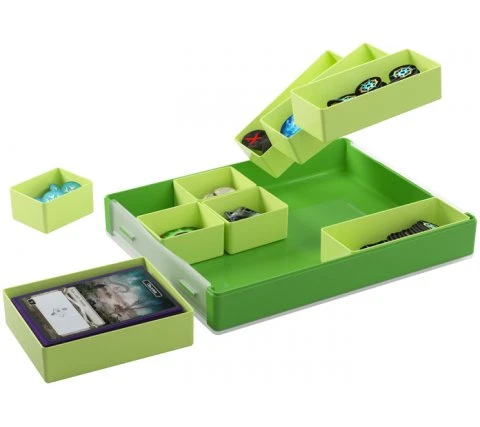 A revolutionary way of storing tokens with the Token Silo Convertible from Gamegenic. The box has a modular design and can be arranged to your own taste. Each box comes with nine removable trays in three different sizes. The largest tray offers space for 75 single-sleeved or 40 double-sleeved cards. The lid is easy to unclip and mount under the box while you play. With this storage box you always have all your tokens for every game at hand!