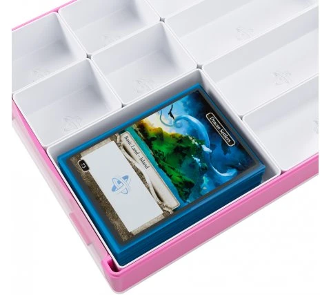 A revolutionary way of storing tokens with the Token Silo Convertible from Gamegenic. The box has a modular design and can be arranged to your own taste. Each box comes with nine removable trays in three different sizes. The largest tray offers space for 75 single-sleeved or 40 double-sleeved cards. The lid is easy to unclip and mount under the box while you play. With this storage box you always have all your tokens for every game at hand!