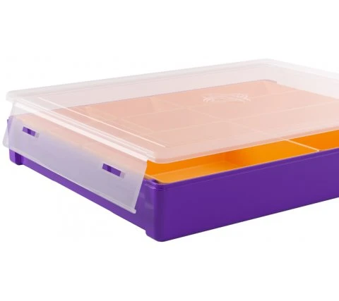A revolutionary way of storing tokens with the Token Silo Convertible from Gamegenic. The box has a modular design and can be arranged to your own taste. Each box comes with nine removable trays in three different sizes. The largest tray offers space for 75 single-sleeved or 40 double-sleeved cards. The lid is easy to unclip and mount under the box while you play. With this storage box you always have all your tokens for every game at hand!