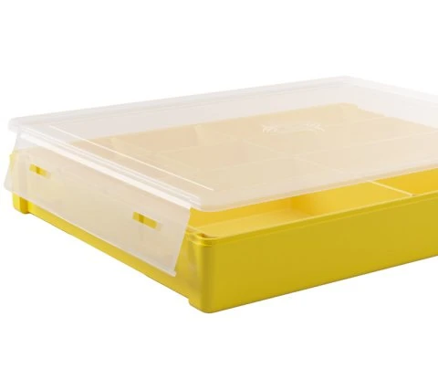 A revolutionary way of storing tokens with the Token Silo Convertible from Gamegenic. The box has a modular design and can be arranged to your own taste. Each box comes with nine removable trays in three different sizes. The largest tray offers space for 75 single-sleeved or 40 double-sleeved cards. The lid is easy to unclip and mount under the box while you play. With this storage box you always have all your tokens for every game at hand!