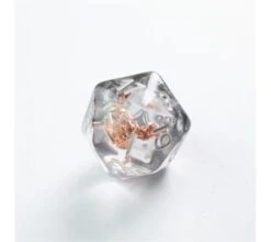 Like a geode the enclave dice Oakie Doakie Dice dark and solid on the outside, and glossy and translucent on the inside. Every die has a colored band in between the solid sides. With their mysterious appearance, these dice are perfect for those who like to go on an adventure.