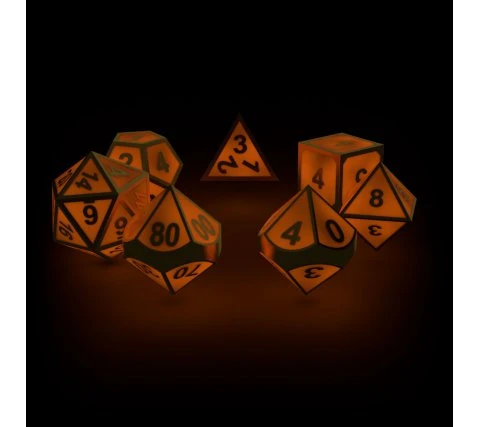 For those who really want to show off their dice, there are the metal glow in the dark dice from Oakie Doakie Dice. These dice not only have a metal frame, which makes them feel heavier, but the different sides of the die give light in the dark. With two different versions, these luxury dice are a beautiful set of accessories for every board game, card game or Role playing game.