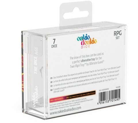 | Name | Oakie Doakie Dice Set RPG Metal Glow in the Dark: Golden Princess (7 pieces) |