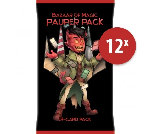 The Pauper Pack from Bazaar of Magic is the cheapest pack you will find, a pack with commons only! The cards come from a large period; there are commons from the first Magic sets to the sets of today.