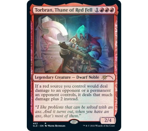 – one foil alternate art Torbran, Thane or Red Fell.