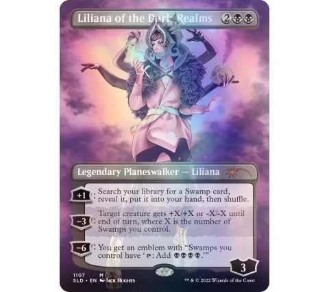 – one foil borderless alternate art Liliana of the Dark Realms.