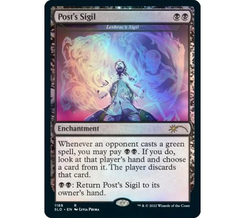 – one foil alternate art Leshrac’s Sigil as ‘Post’s Sigil’.