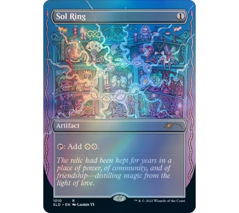 – one foil borderless alternate art Sol Ring.