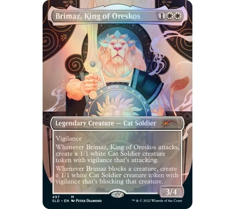 – one foil alternate borderless art Brimaz, King of Oreskos.