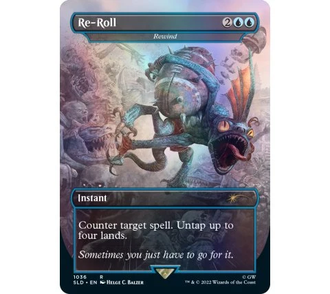 – one foil borderless alternate art Rewind as ‘Re-Roll’.