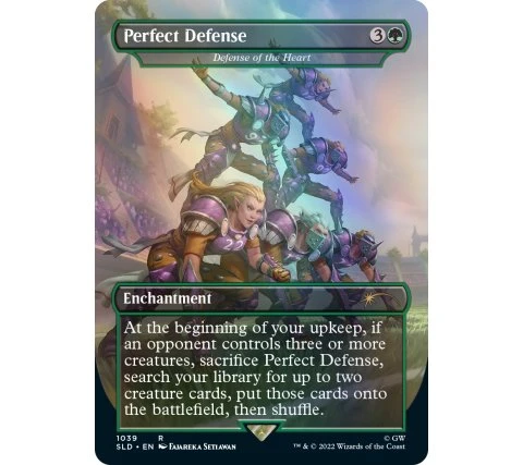 – one foil borderless alternate art Defense of the Heart as ‘Perfect Defense’.
