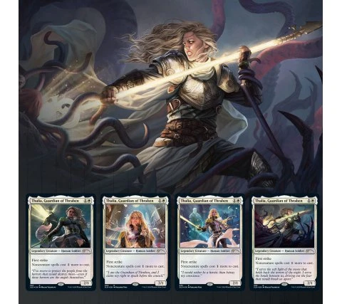 – four different alternate art copies of Thalia, Guardian of Thraben