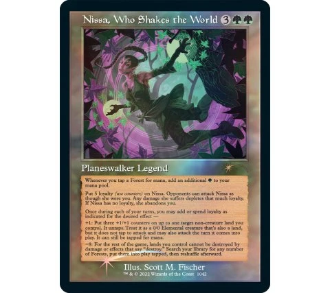 – one foil retro frame alternate art Nissa, Who Shakes the World.