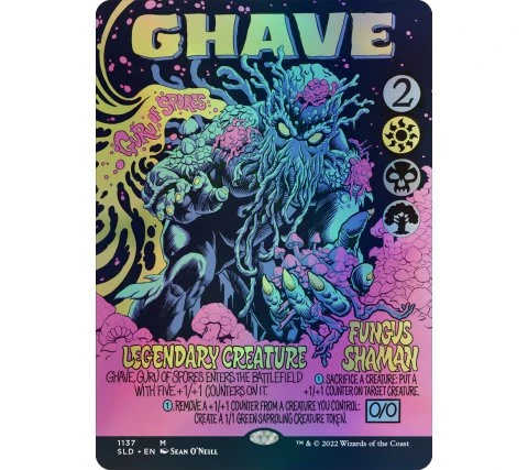 – one foil borderless alternate art Ghave, Ghuru or Spores.