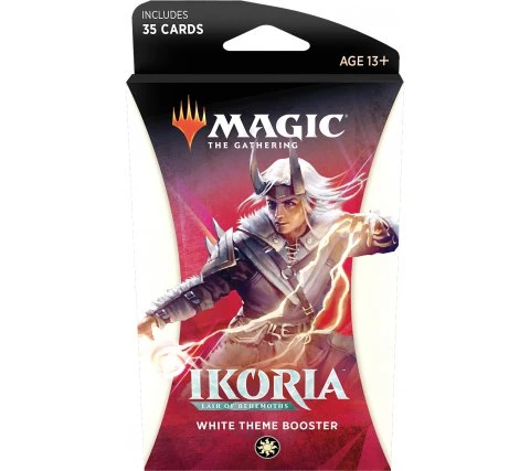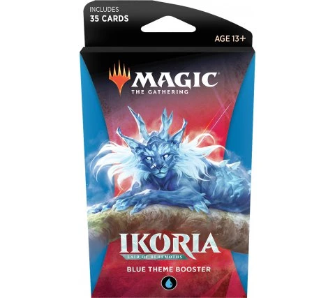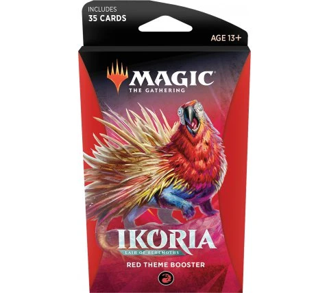 This set contains six different theme boosters from Ikoria: Lair of Behemoths. Each theme booster contains 35 Magic: the Gathering cards which one rare and several uncommons and commons. In approximately one in eight theme boosters you will find no rare, but a mythic rare!