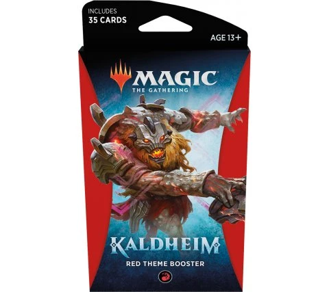 This set contains six different theme boosters from Kaldheim. Each theme booster contains 35 Magic: the Gathering cards which one rare and several uncommons and commons. In more than one in eight theme boosters you will find no rare, but a mythic rare!
