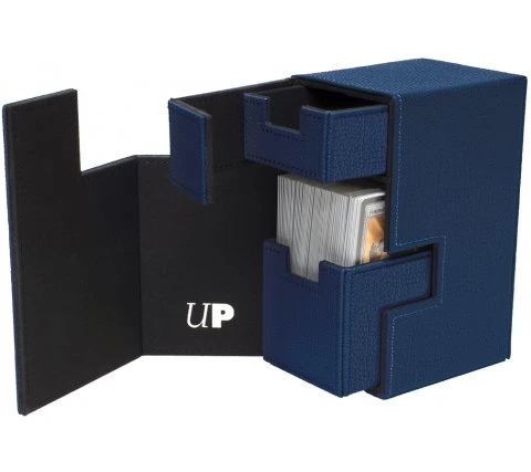 Leatherette deckbox with a beautiful texture and beautiful stitching. This deckbox is the ideal place to store more than 75 double sleeved cards in style. In addition, the Deckbox also offers space for dice, tokens and other accessories. Thanks to the handy removable trays can easily fill and empty the Deckbox.